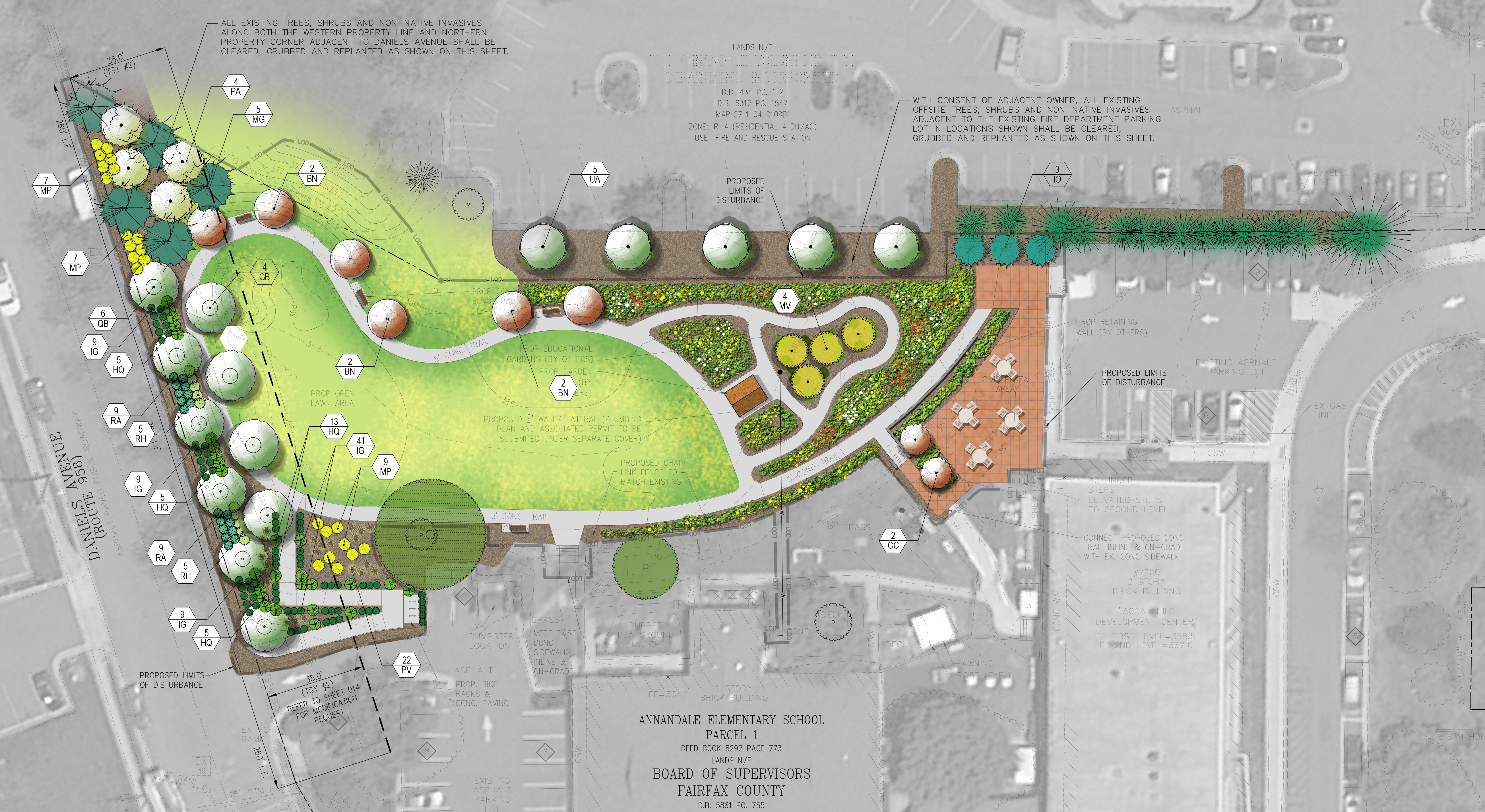 The design converts the property’s existing underutilized open space into a more functional community space for public enjoyment. The design includes the installation of a new Americans with Disabilities Act (ADA) accessible path to the space, while providing a connection from Daniels Avenue to Columbia Pike.
